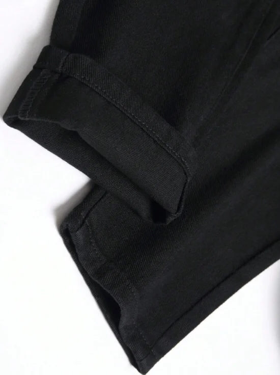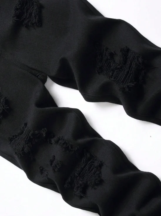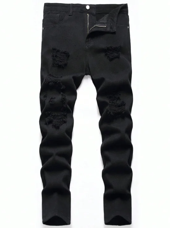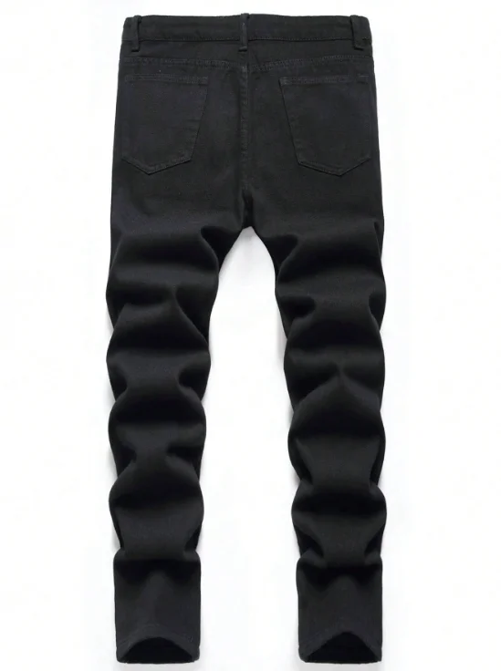 Men’s Slim Fit Black Jeans – Perforated Stretch Denim Pants